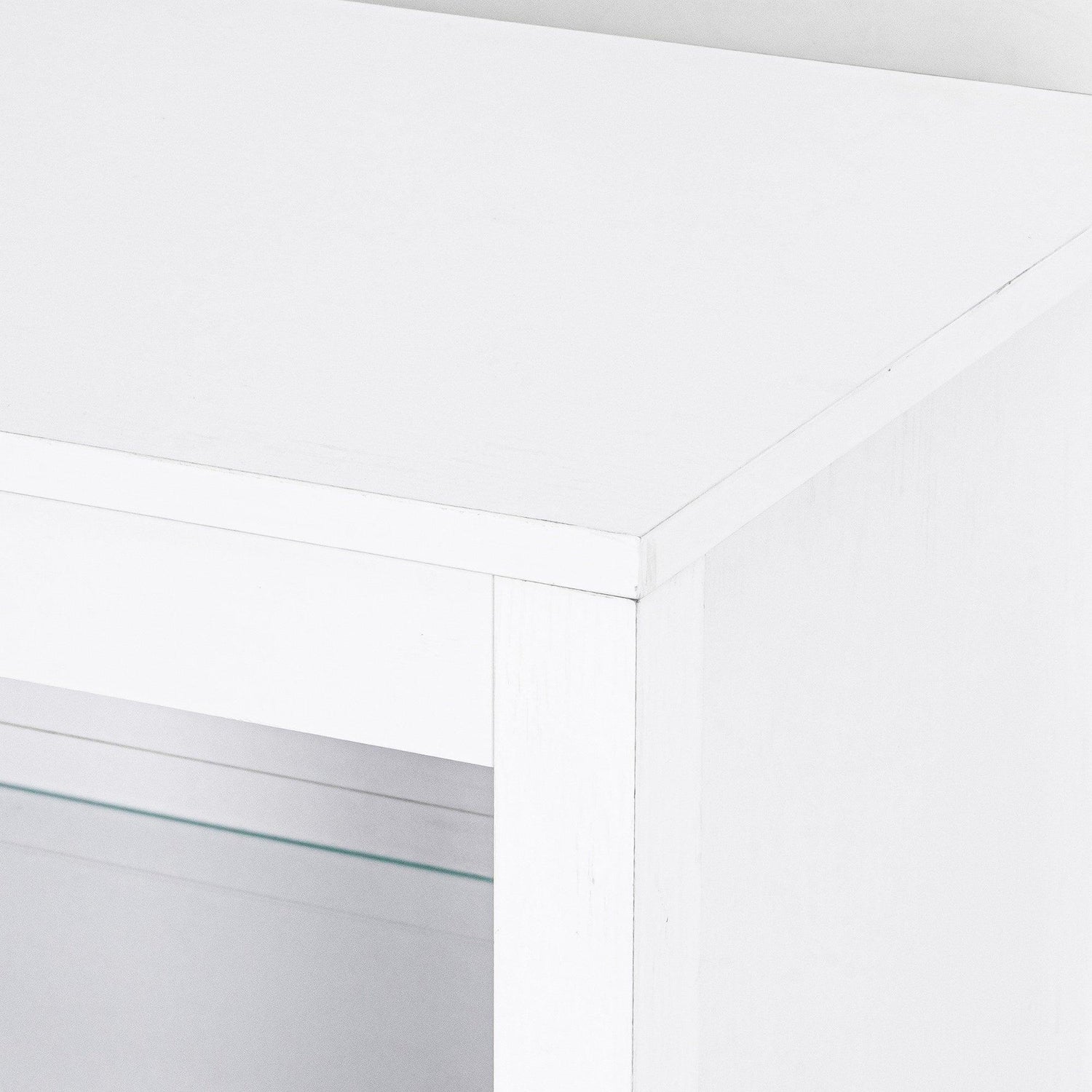 - [Layered Glass Shelves]: The TV cabinet has no cabinet doors, and the storage space on both sides uses glass shelves. The shelf height can be adjusted in three levels to create the illusion of larger storage space while stylishly displaying your items.