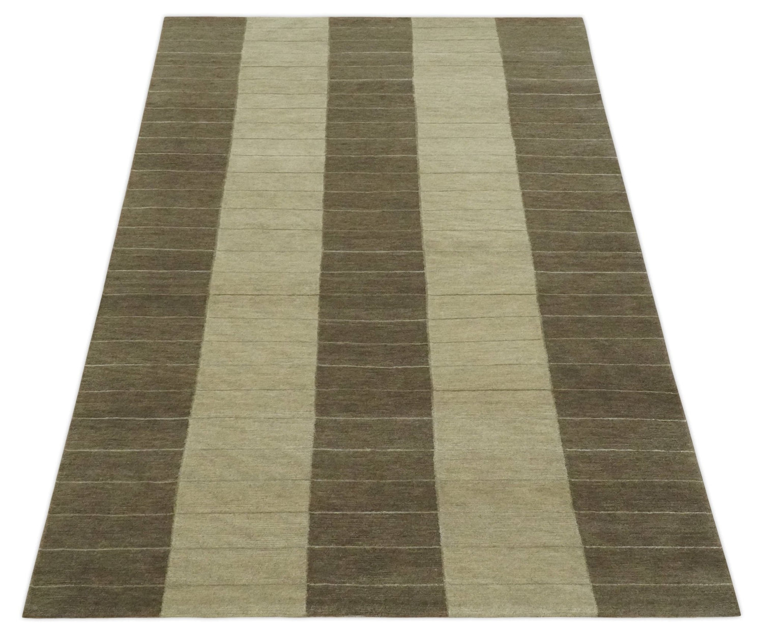 Beige and Brown Modern Geometrical Hand loom 5x8 wool and Art Silk area Rug