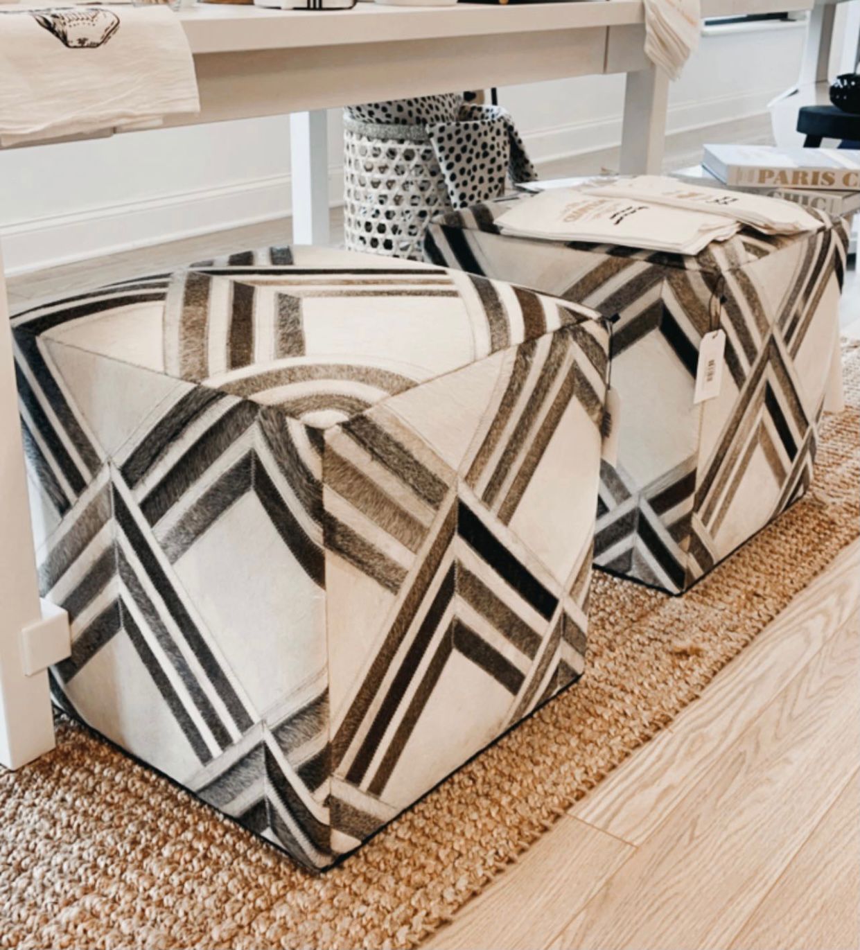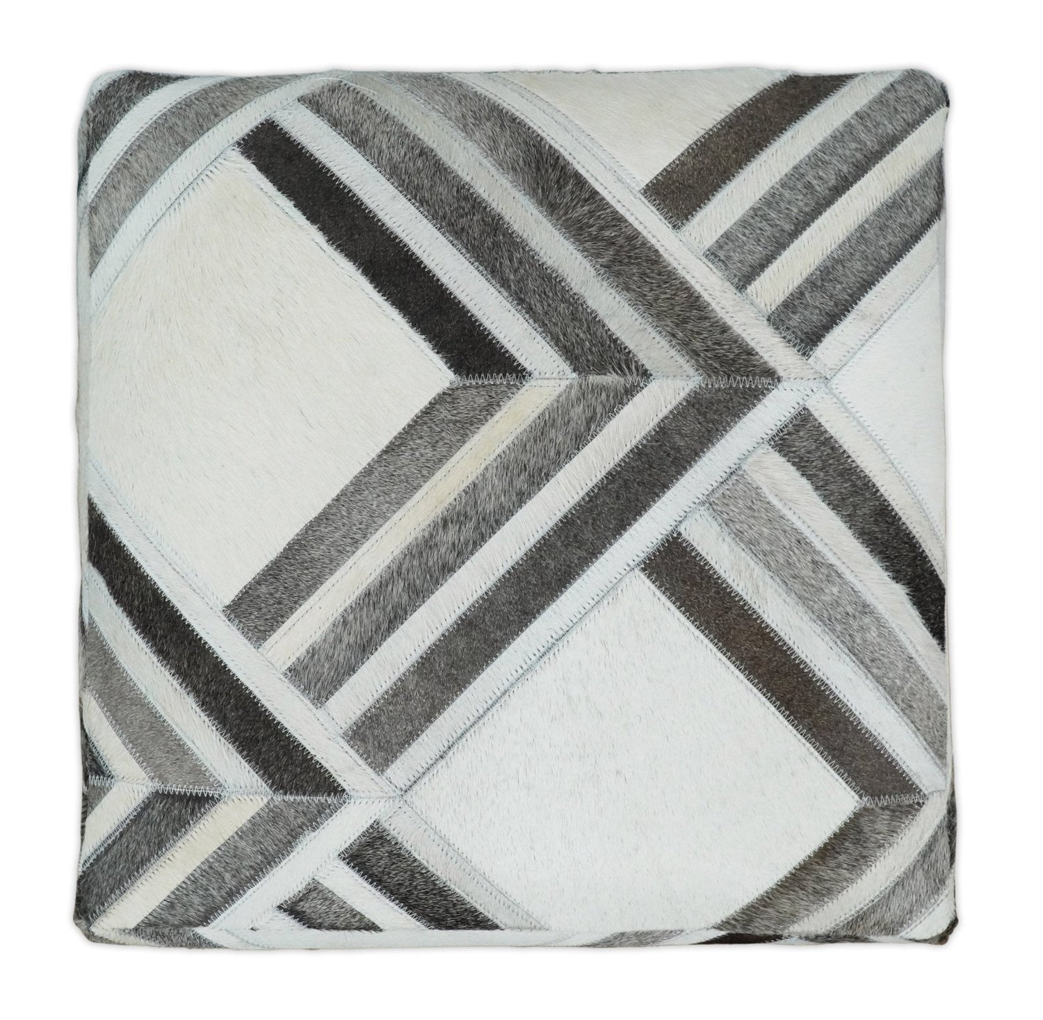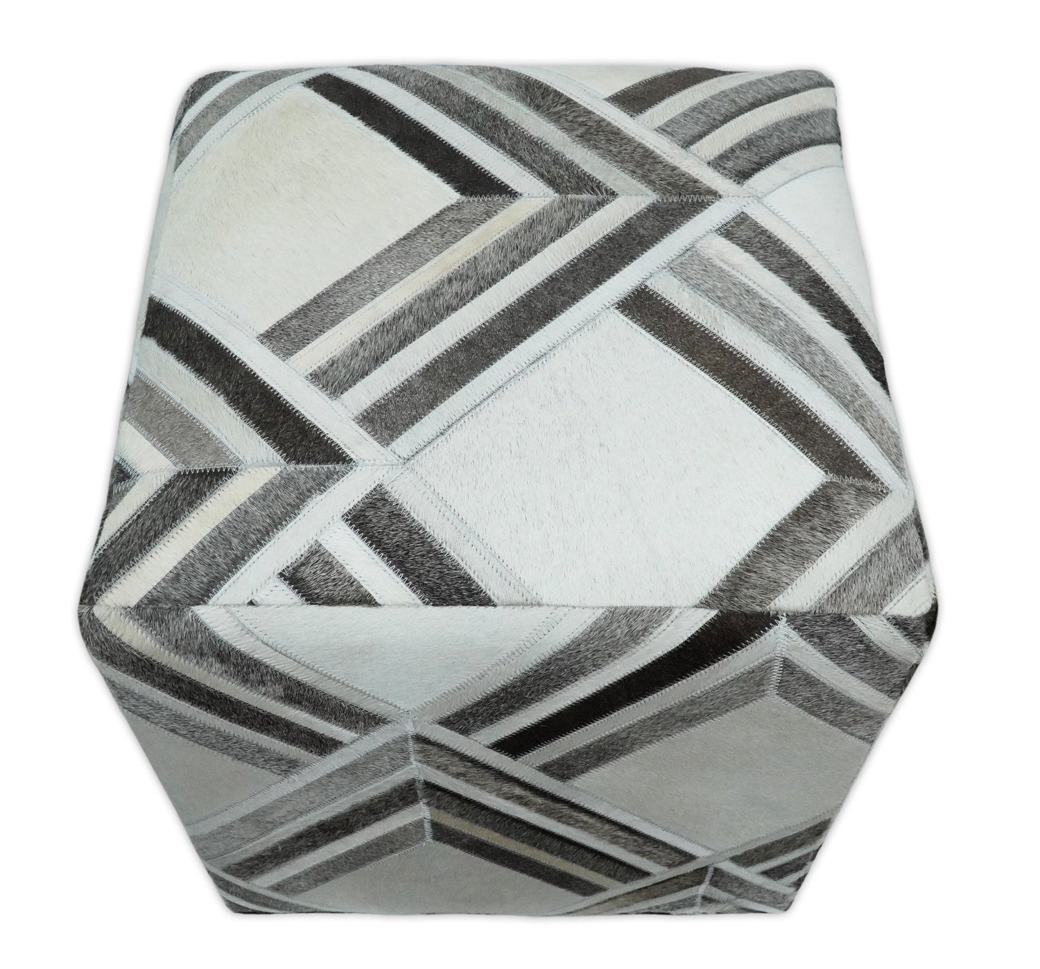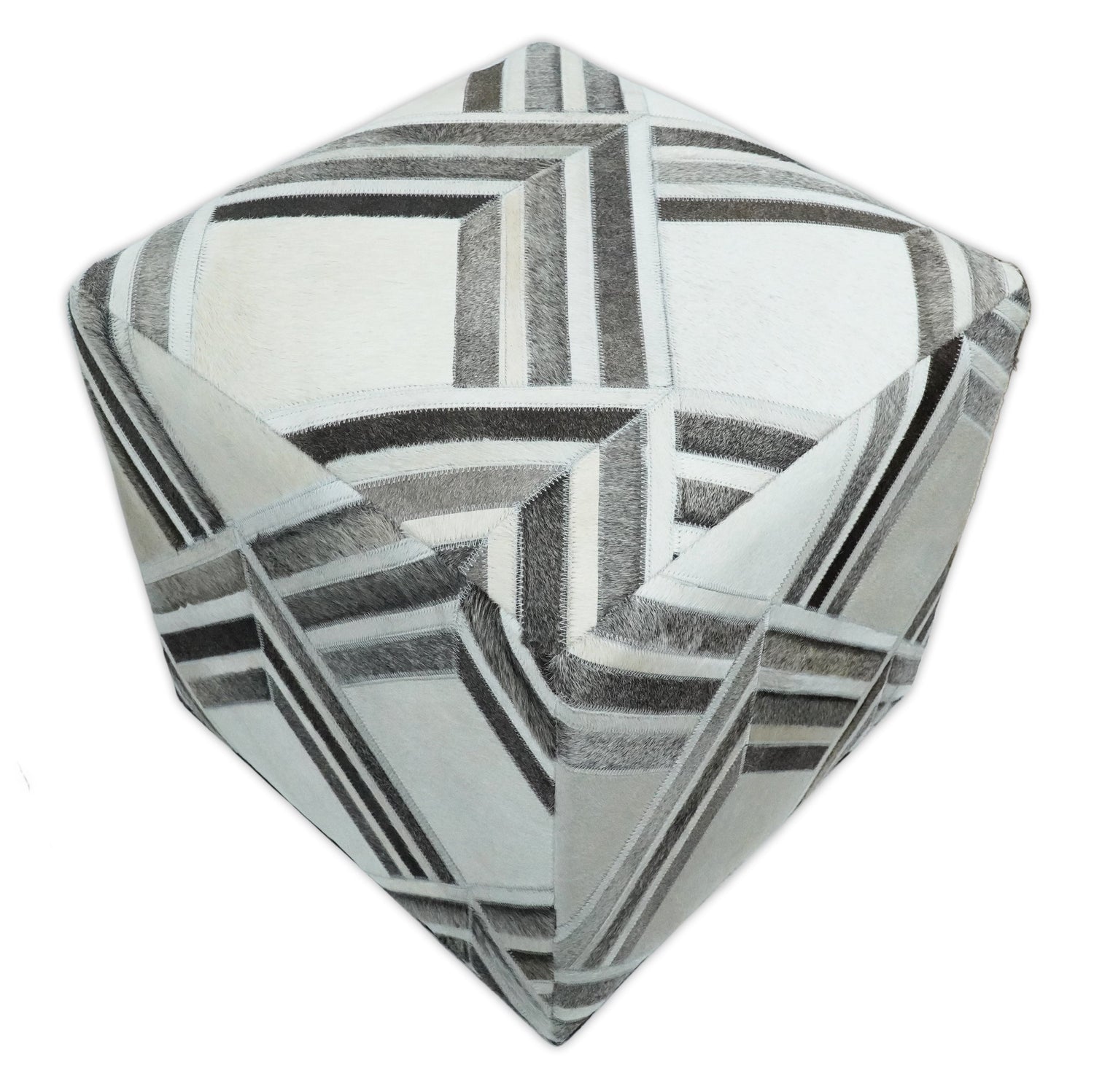 Black and White Luxury Genuine Leather Pouf Ottoman, Footstool, Side table, Seat , Foot Rest, Living Room, Bedroom | TRD284