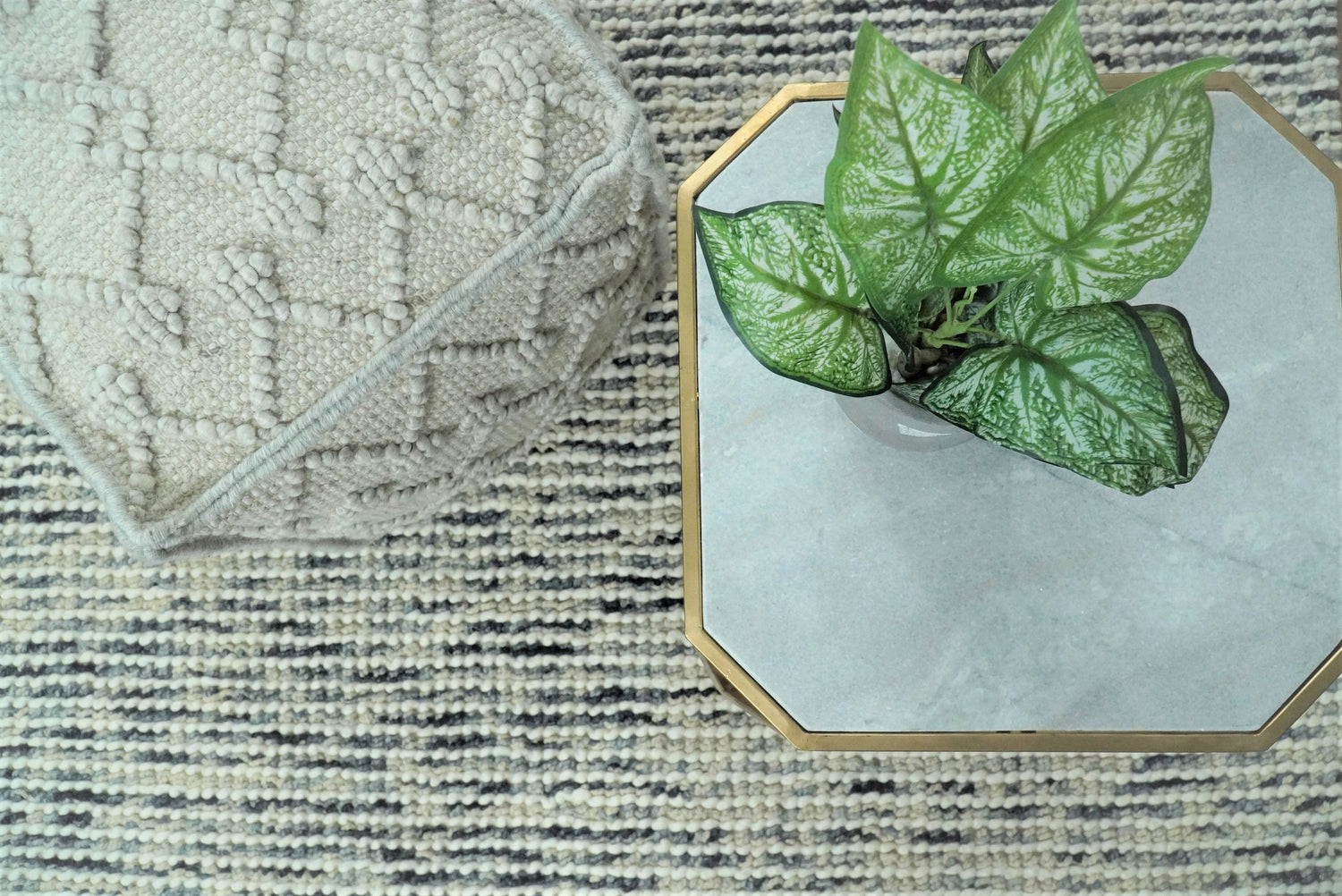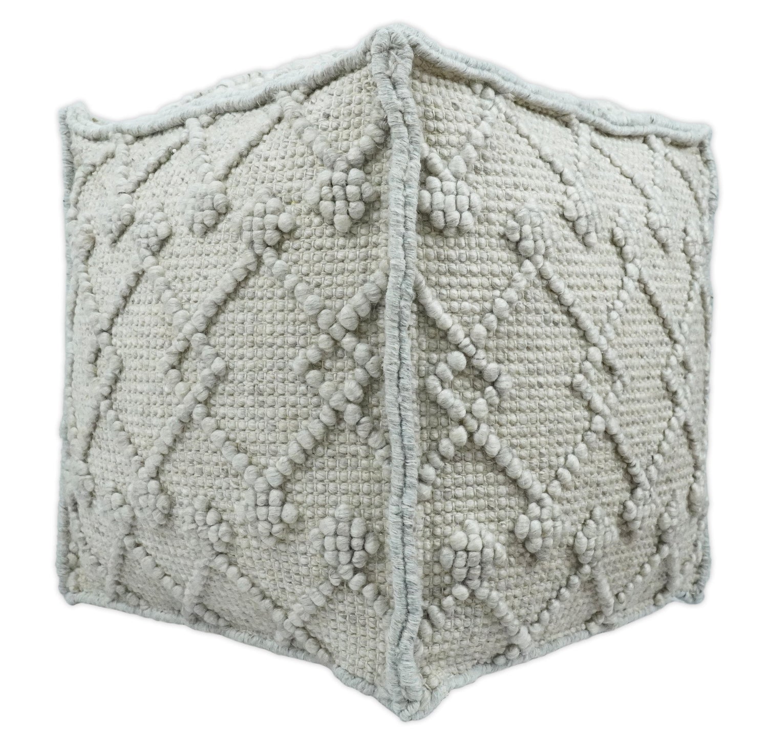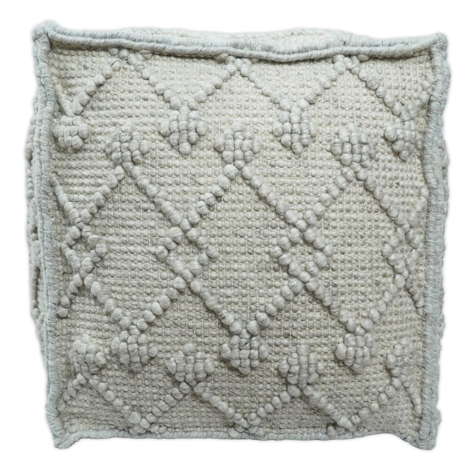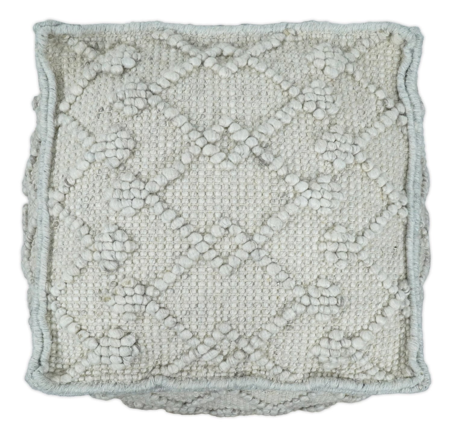 Boho Handwoven Ivory Pouf Ottoman Made with Wool Blend, Tribal Design, Footstool, Couch, Side table | TRD111