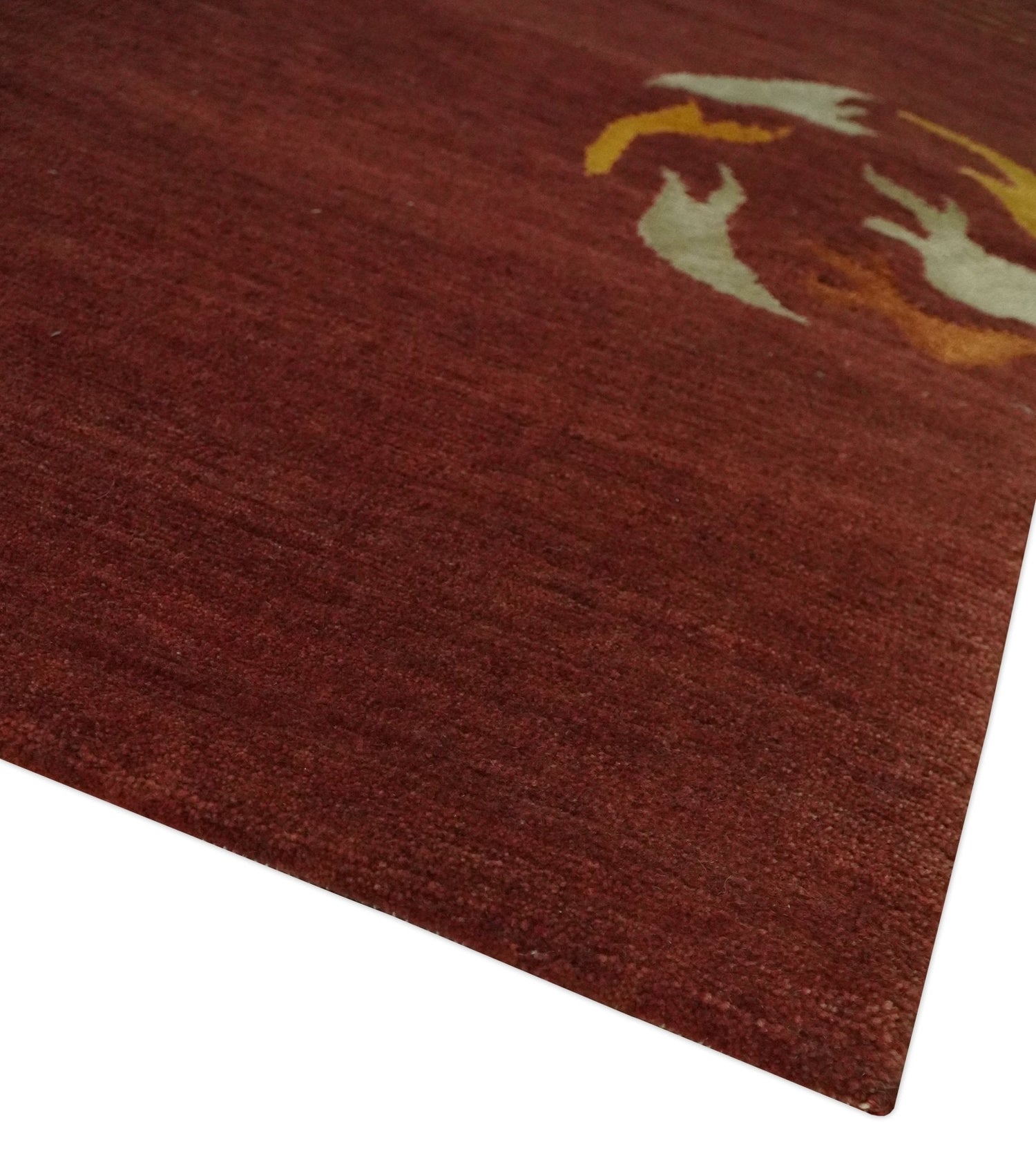 Brown and Gold Modern Art Hand knotted 6x8 Wool and Art Silk Area Rug