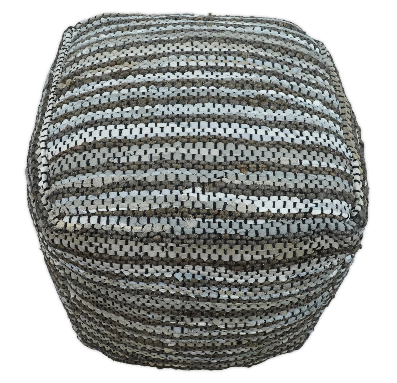 Charcoal, Silver and Ivory Square Jute Pouf Ottoman, Footstool, Side table, Seat , Foot Rest, Living Room, Bedroom, Boho Decor | TRD108