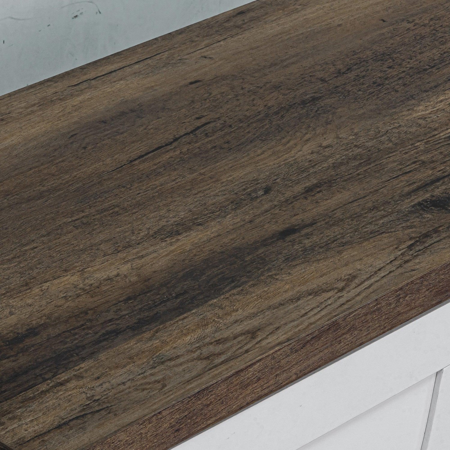 Elevate the ambiance of your home with this modern farmhouse TV stand, bathed in a white/brown/grey finish. This TV stand, a harmonious blend of wood and metal, exudes an old rustic charm that is sure to grab attention while promising durability. Crafted to support a 58-inch flat-screen TV, this piece draws inspiration from the weathered aesthetics of ancient barns. Its distinctive character infuses an unparalleled style element into your space, making it a unique addition to your home decor.