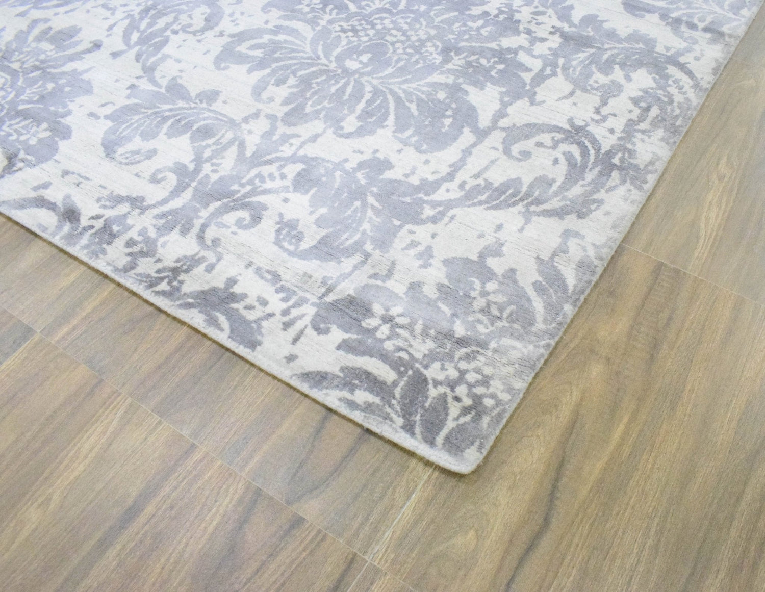 Floral 8x10 Handmade Art Silk Area Rug, Made with screen printing technique