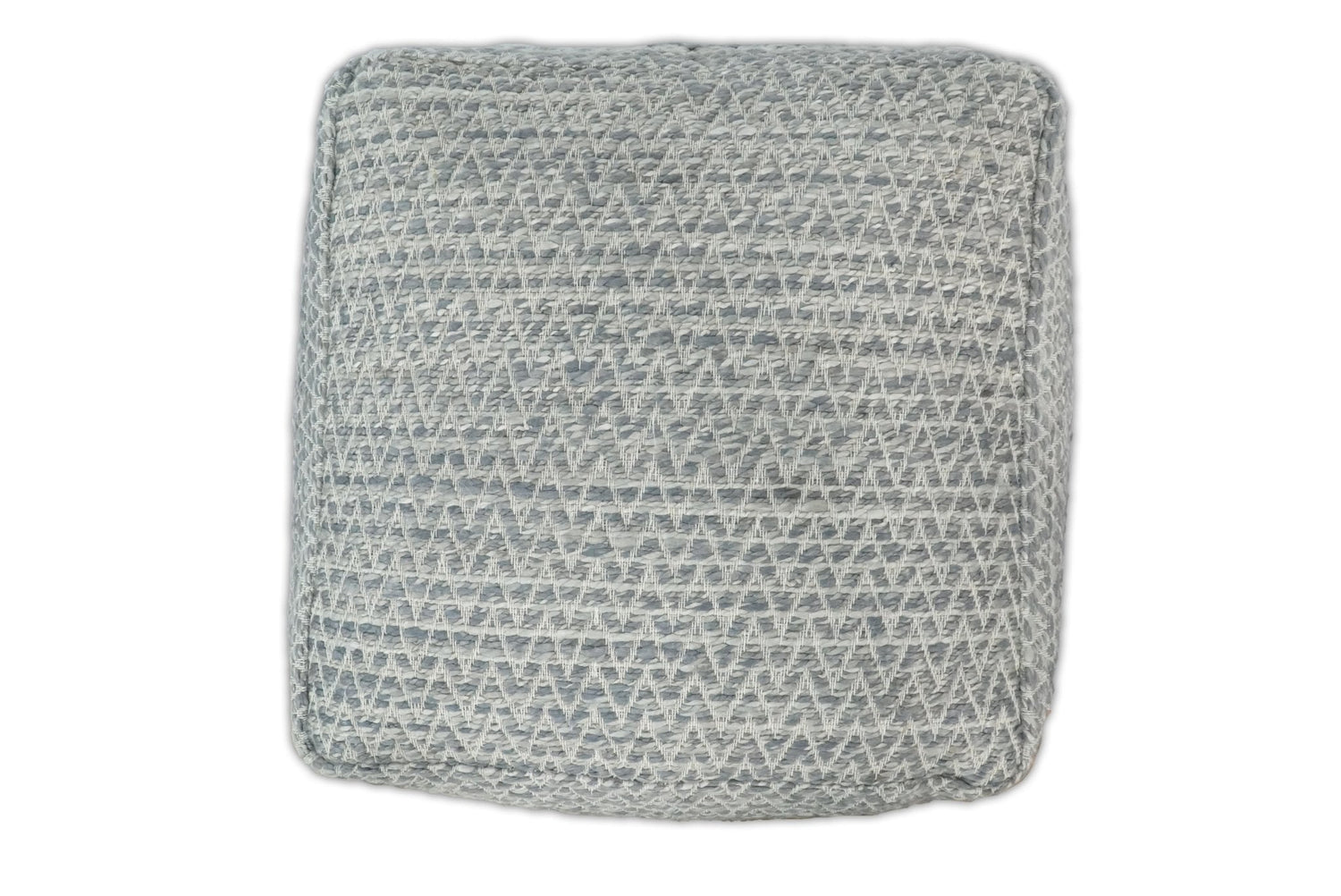 Ivory and GRAY Modern Handwoven Gray Blue Pouf Ottoman Made with Viscose, Contemporary Chevron Design, footstool, couch, side table | TRD109