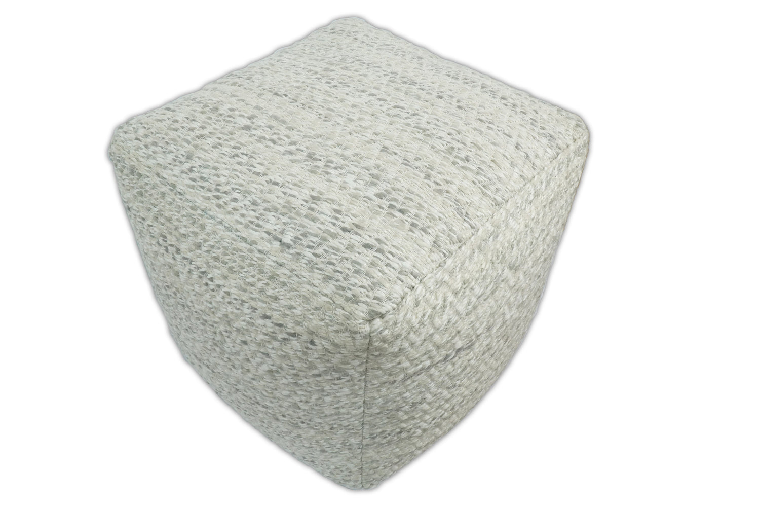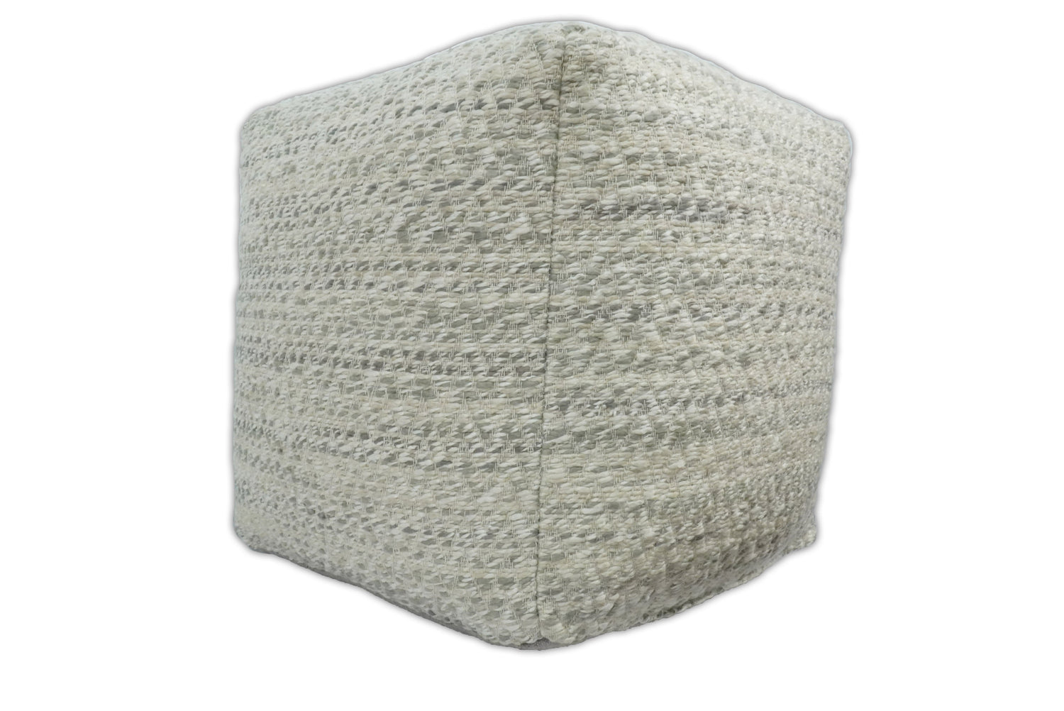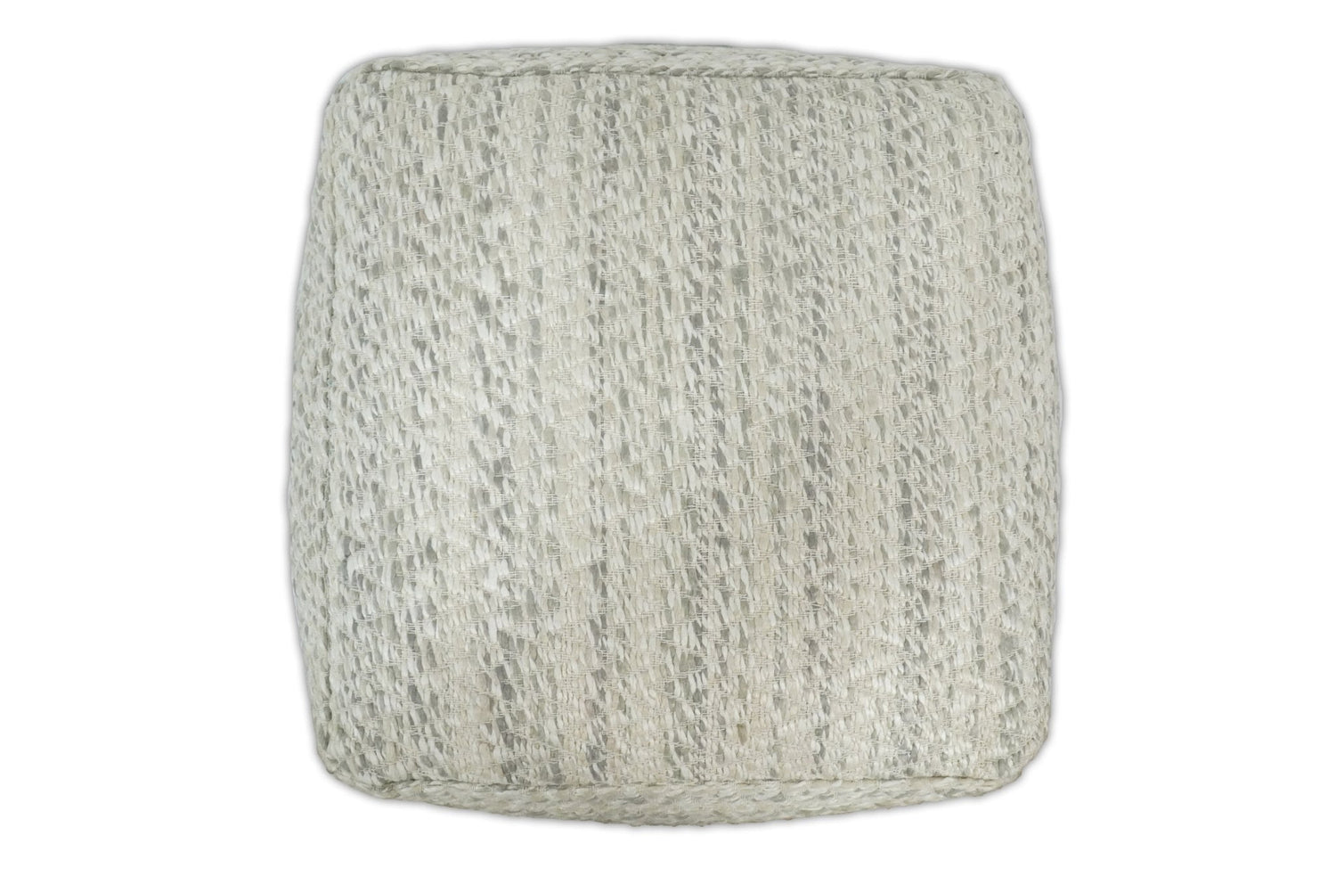 Ivory, Beige and Gray Modern Chevron Handwoven Beige Pouf Ottoman Made with Viscose, Contemporary Chevron Design, Footstool, Couch, Side table | TRD110
