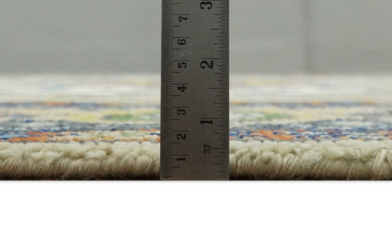 This hand-knotted Traditional Heriz Area Rug features a blend of ivory, beige, blue, and charcoal colors. Made from premium wool, it provides durability and softness for a timeless addition to any space. The rug is crafted in Bhadohi, India, a region known for its centuries-old tradition of rug-making.