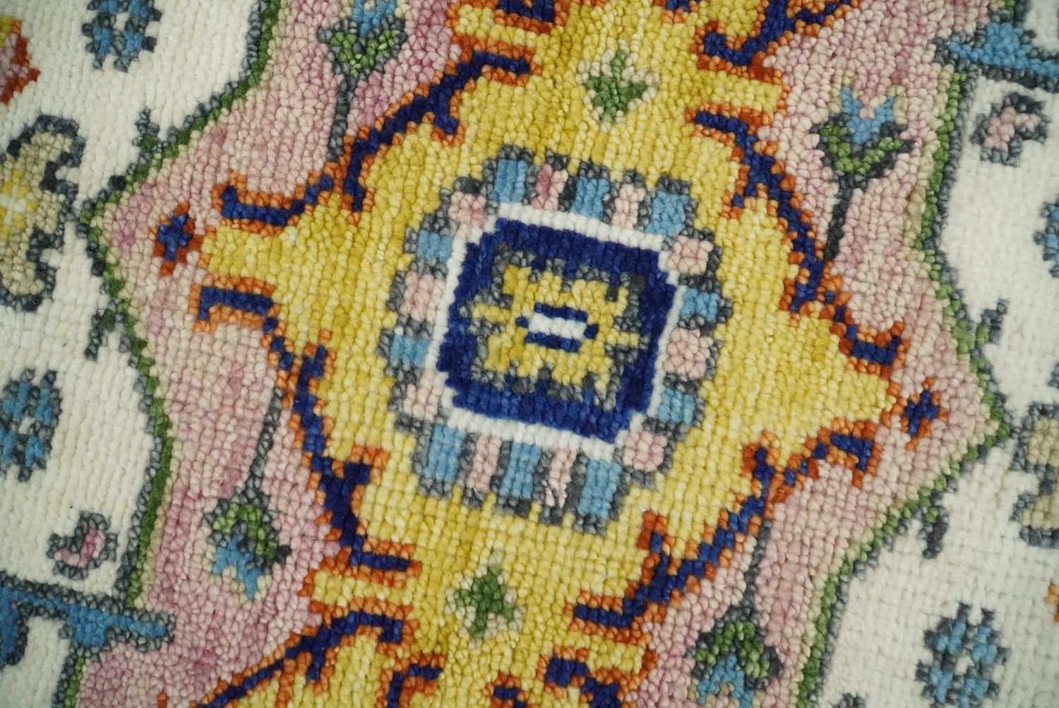 Ivory, Beige, Blue and Charcoal Traditional Heriz Hand Knotted Multi Size Wool Area Rug