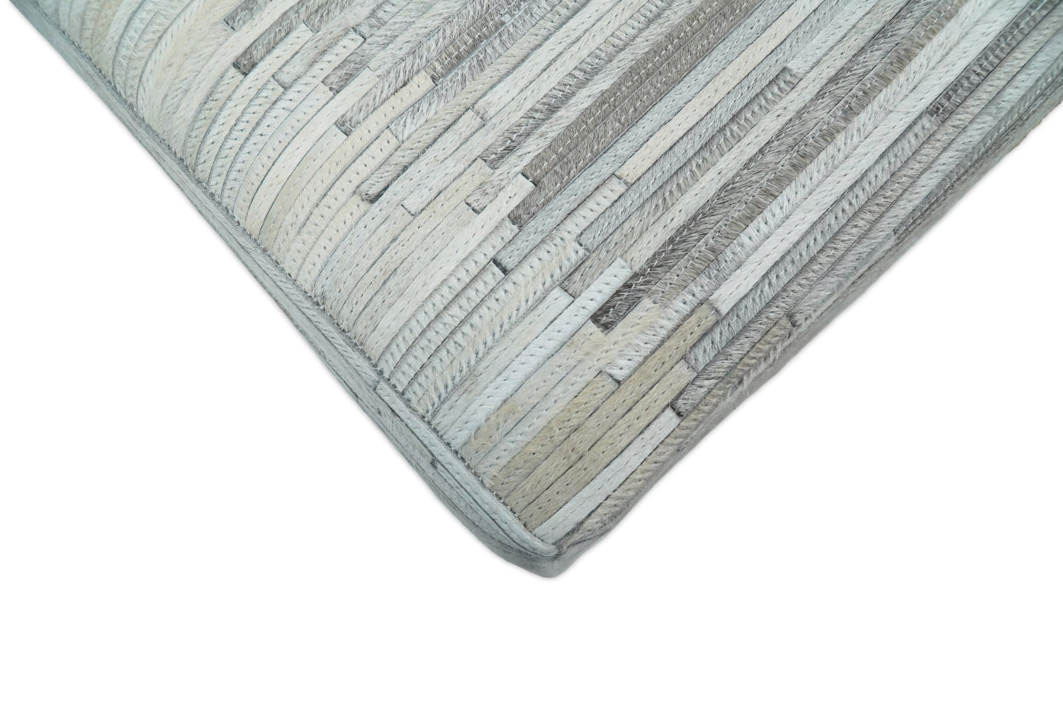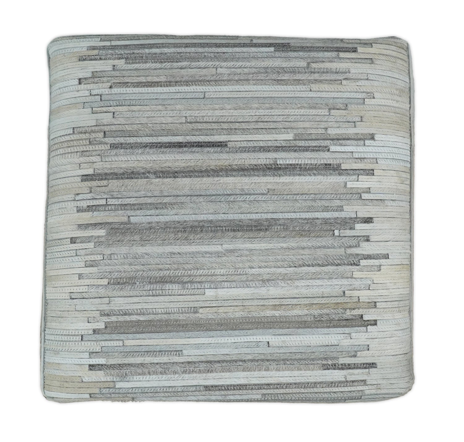 Ivory, Silver and Gray Square Leather Pouf Ottoman, Footstool, Side table, Seat , Foot Rest | TRD102