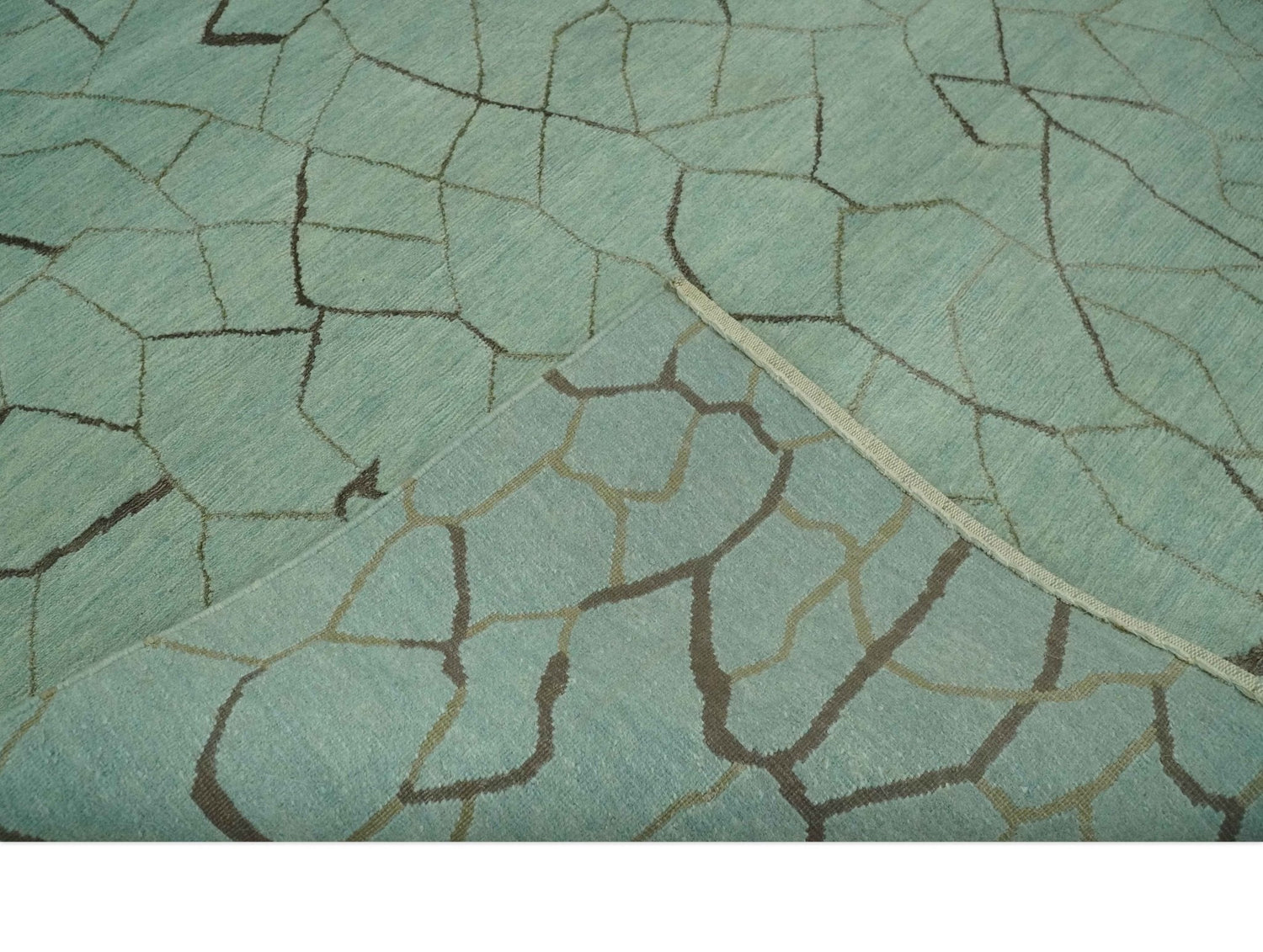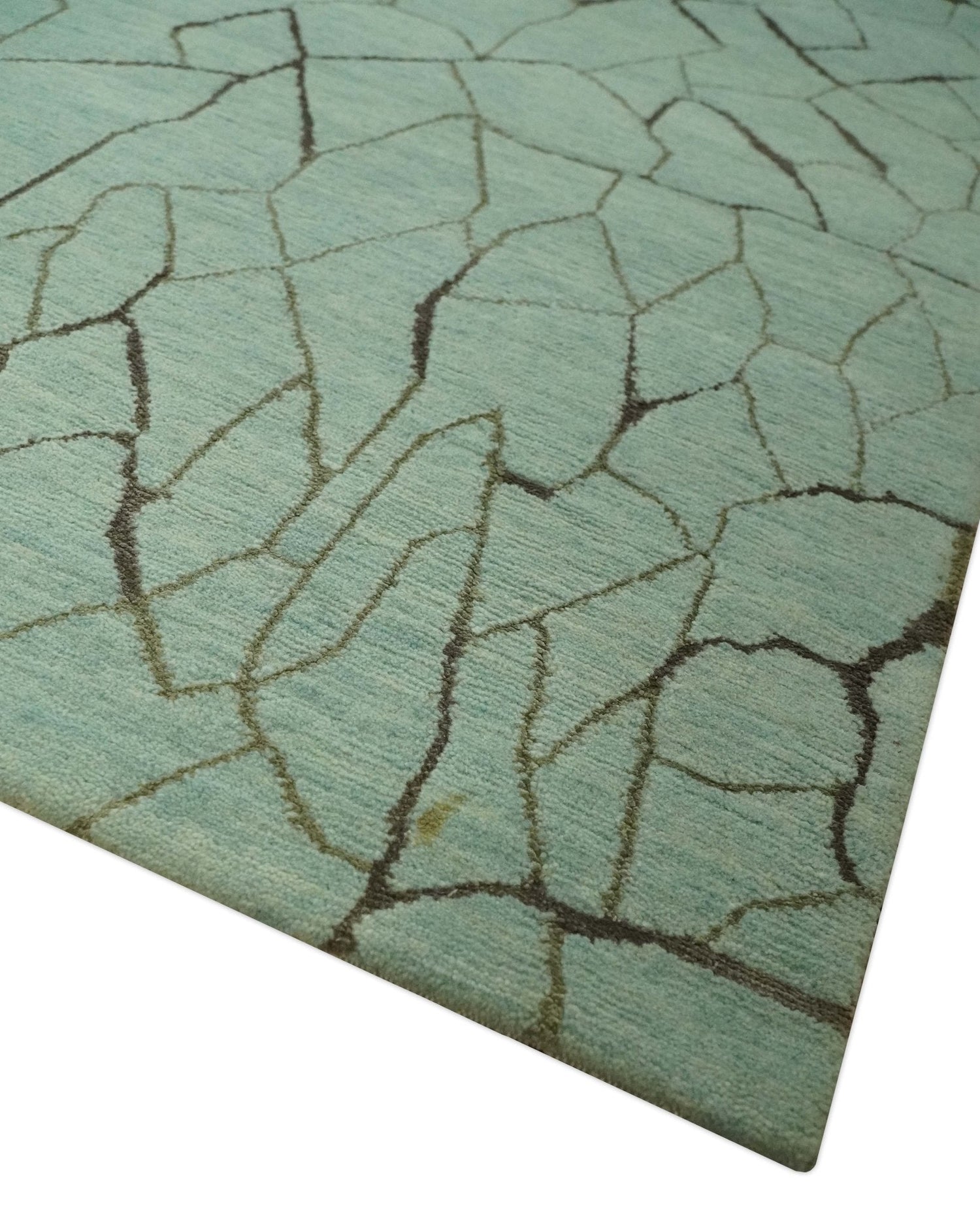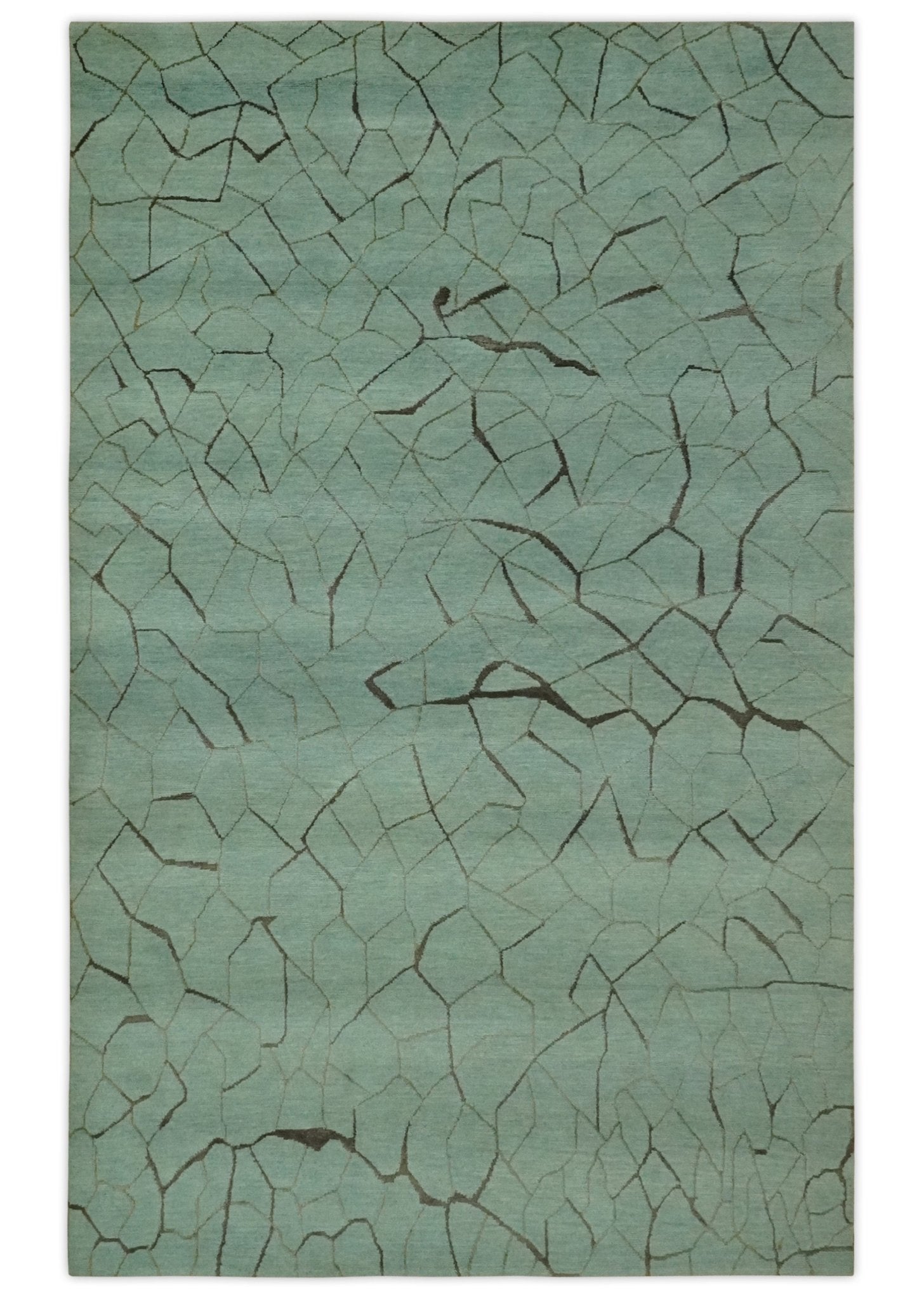 Light Green and Charcoal Hand loom Modern Crack Design 5x8 Wool and Art Silk Area Rug