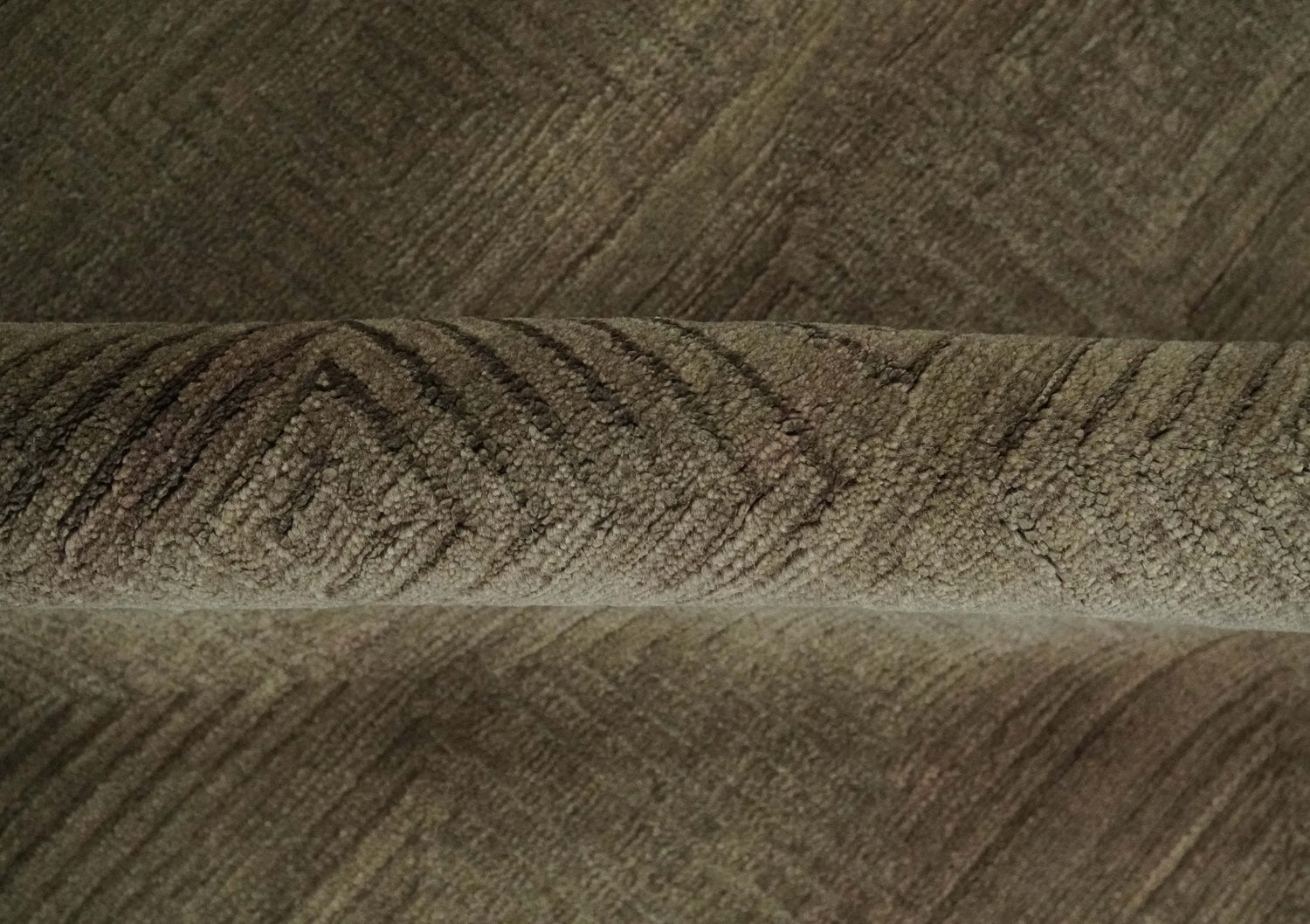 Modern Solid Olive Geometrical Pattern Contemporary Handloom 5x7 wool and Art silk Area Rug