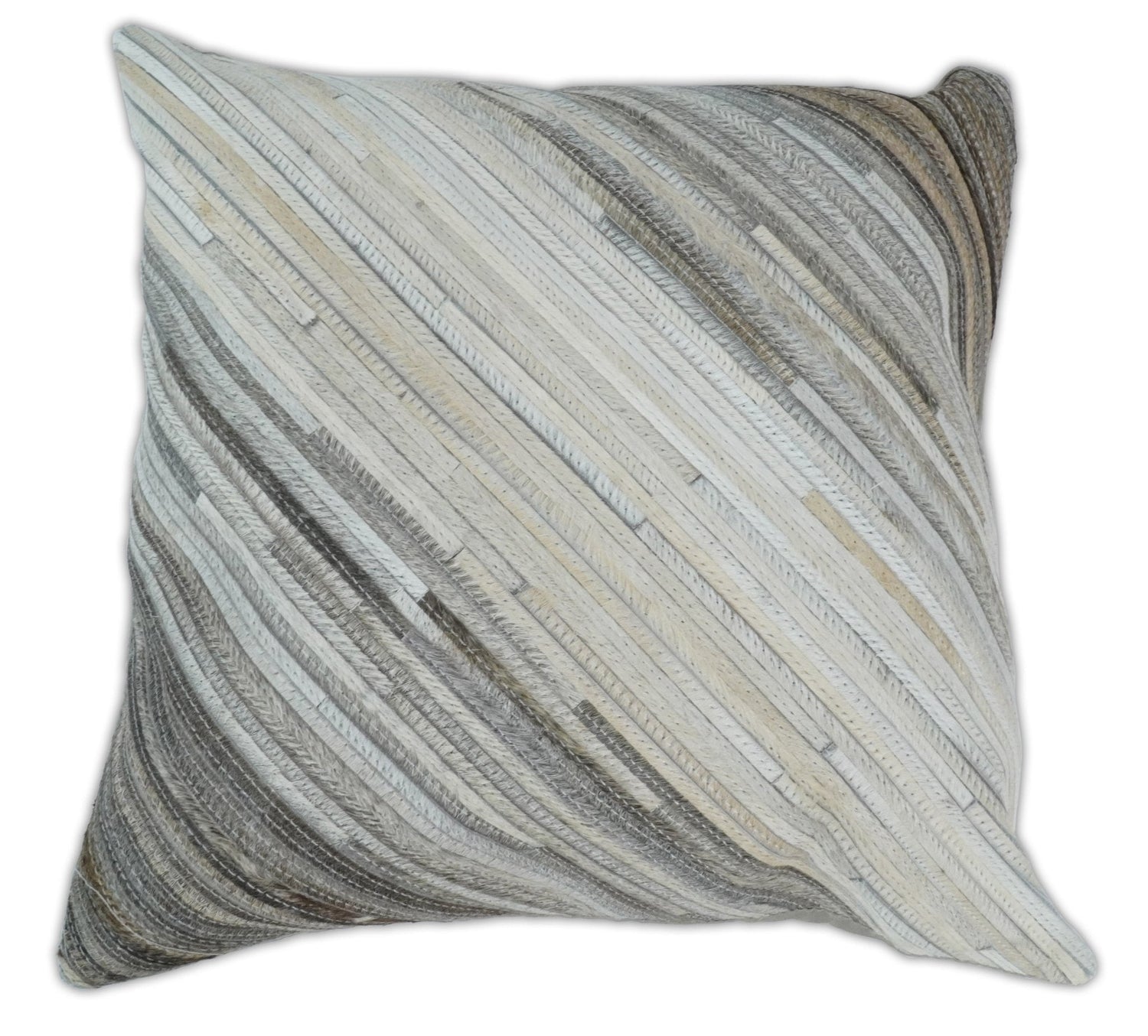 Modern Stripes Ivory and Gray Genuine Leather Accent Pillow, Cushion | PL17