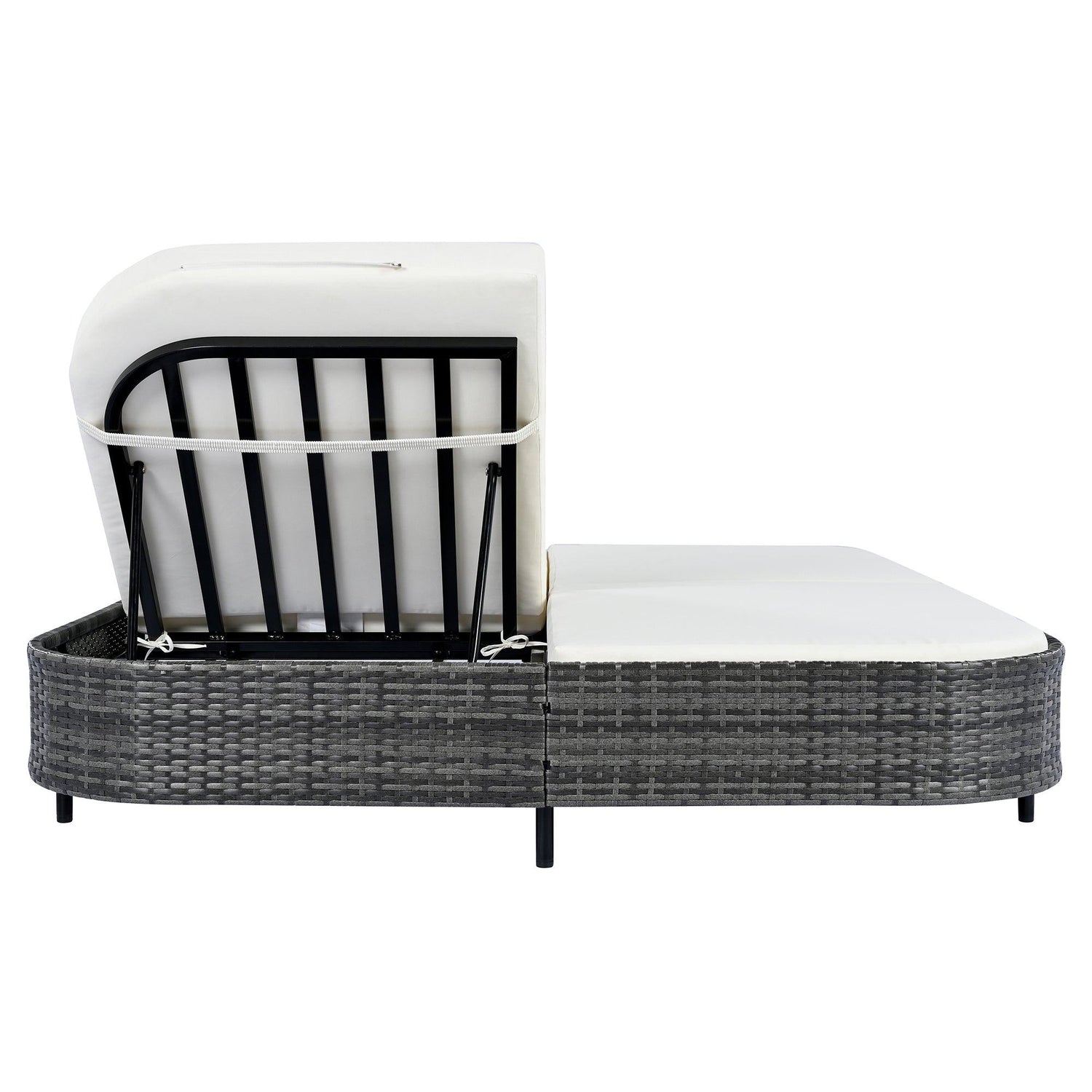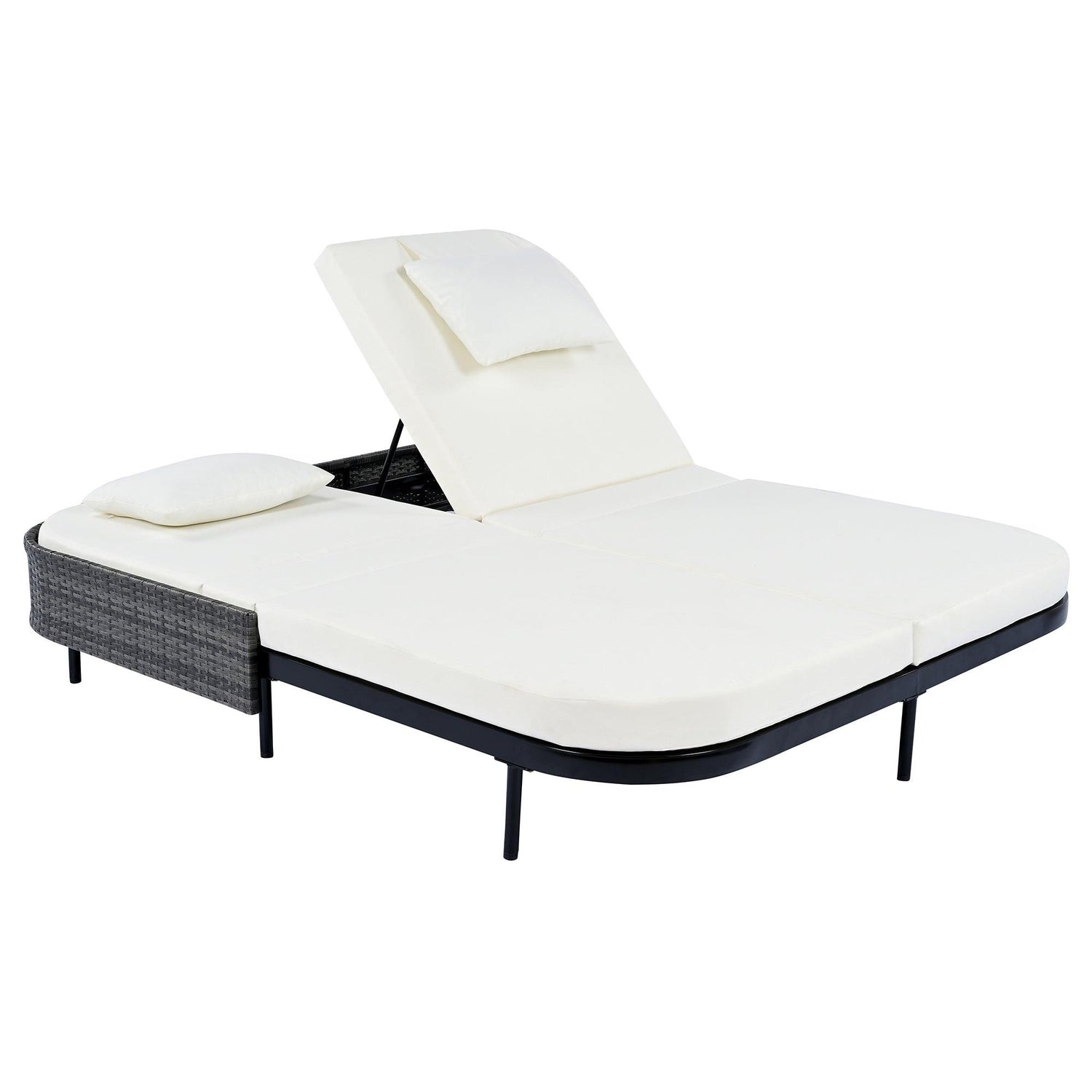 【Adjustable Backrest for Personalized Comfort】 :This outdoor daybed is designed with a sleek curved edge, perfect for two people to relax in comfort. The double daybed features independently adjustable 5-position backrests, tilt each side separately for sunbathing, reading, or napping. Customize angles to suit individual preferences effortlessly. The combination of wicker and metal frame creates a modern, durable piece of outdoor furniture that adds style to your patio, garden, or poolside.