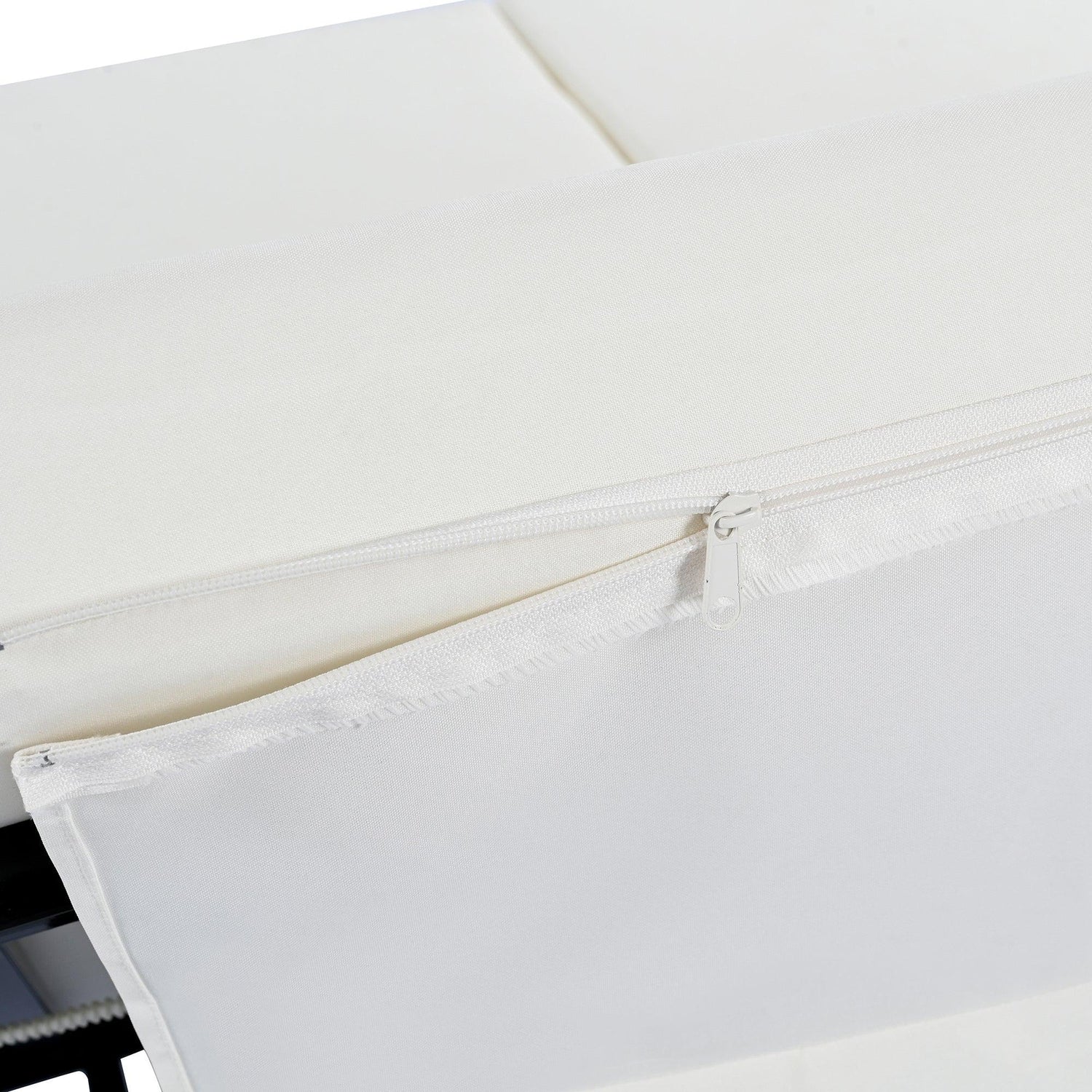 【All-Weather Cushion and Pillow】 :The one-piece soft cushions are designed for maximum comfort. The back and seat cushions of this daybed are connected together, and the included pillows are made of high-density foam for extreme comfort and are removable for individual use needs. The thick, highly resilient foam resists sagging. All stain-resistant, UV-resistant, and weather-resistant cushion covers are removable and washable for easy maintenance and durability.