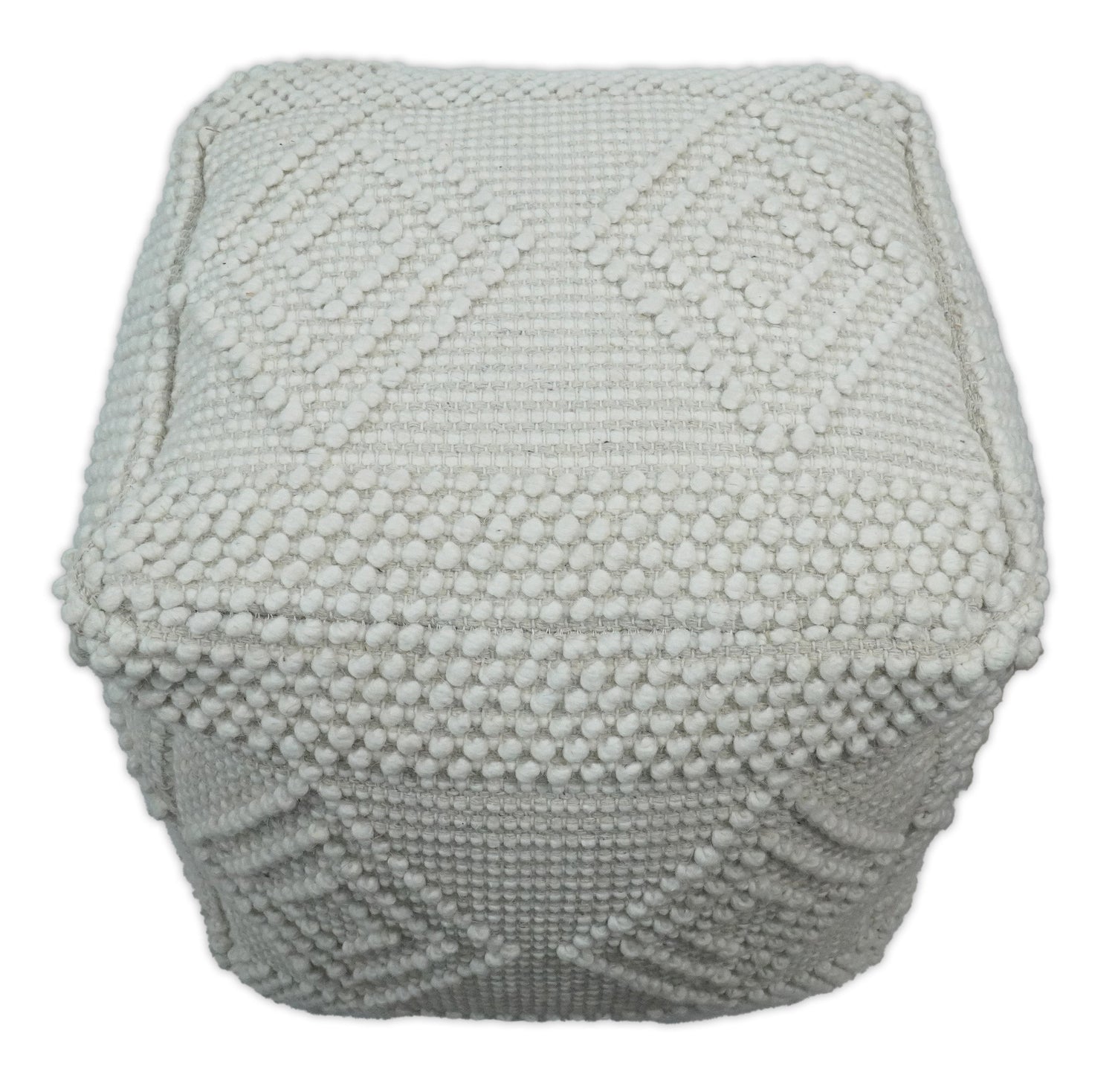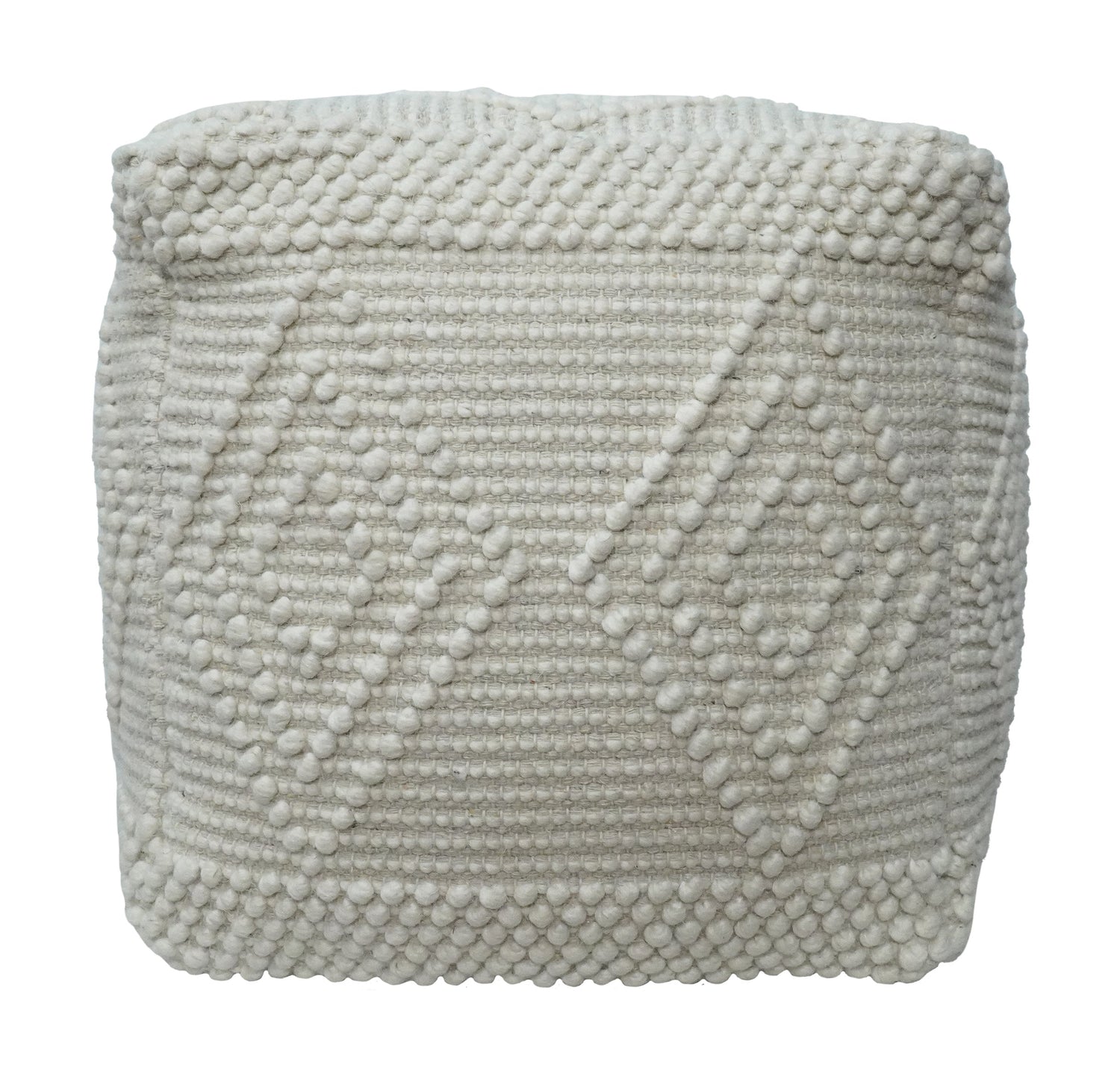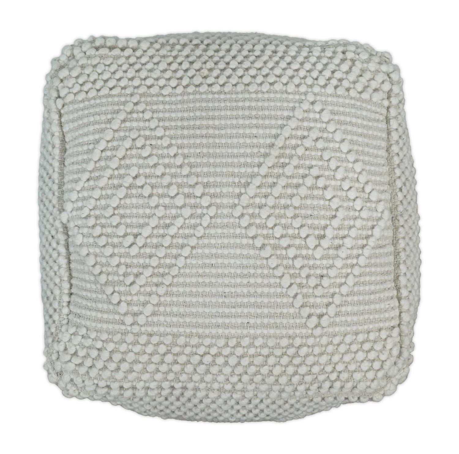 White Woolen Hand Woven Square Pouf, Footstool, Ottoman, Side table | TRD101